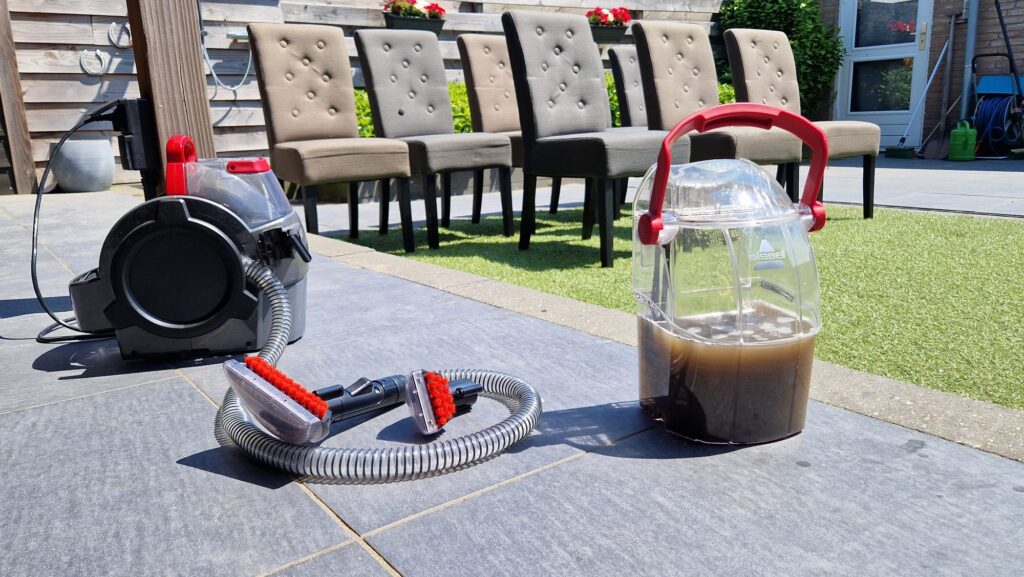 Zelf nam ik de proef op de som en dit was het resultaat. Ik maakte hiermee de bank, eettafel stoelen en lounge set schoon. Wat een smerigheid!